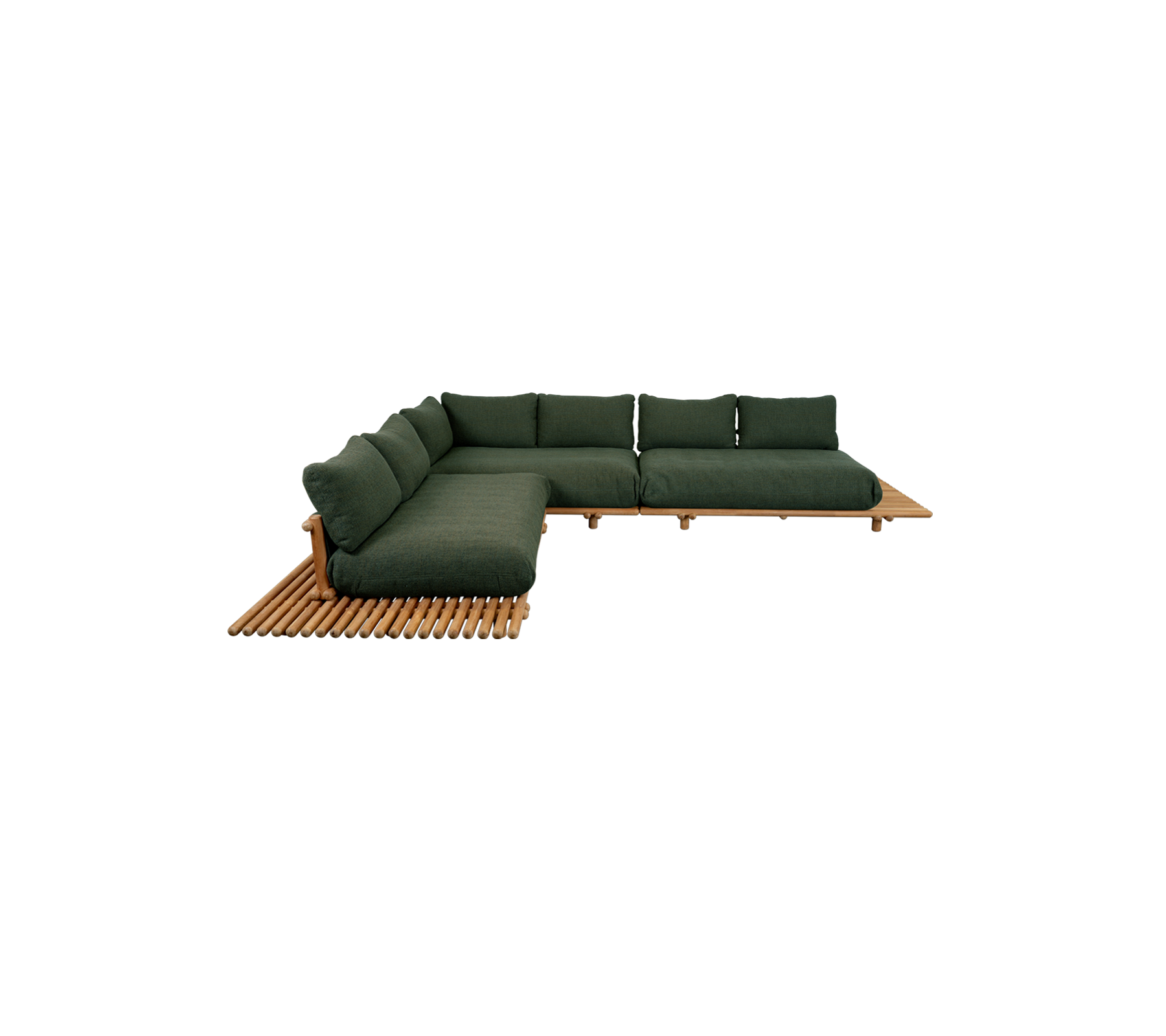 Den store Sticks Platform hjørnesofa består av tre sofamoduler og gir god plass til flere sitteplasser. Den er perfekt for avslappende stunder, enten du nyter litt tid alene eller deler øyeblikket med familie og venner. Den slitesterke rammen er tilgjengelig i sertifisert teak og pulverlakkert aluminium. For å bevare teakens vakre, gyllenbrune farge anbefales det å bruke våre Teak Care-produkter.